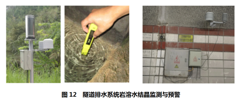 目前在该隧道中布置了洞内、洞外的监测点(见图12),配合施工缝排水设施的定期检查工作,正在持续进行该隧道的排水系统结晶监测和预警工作,为隧道管理部门的养护工作提供协助和支持。
