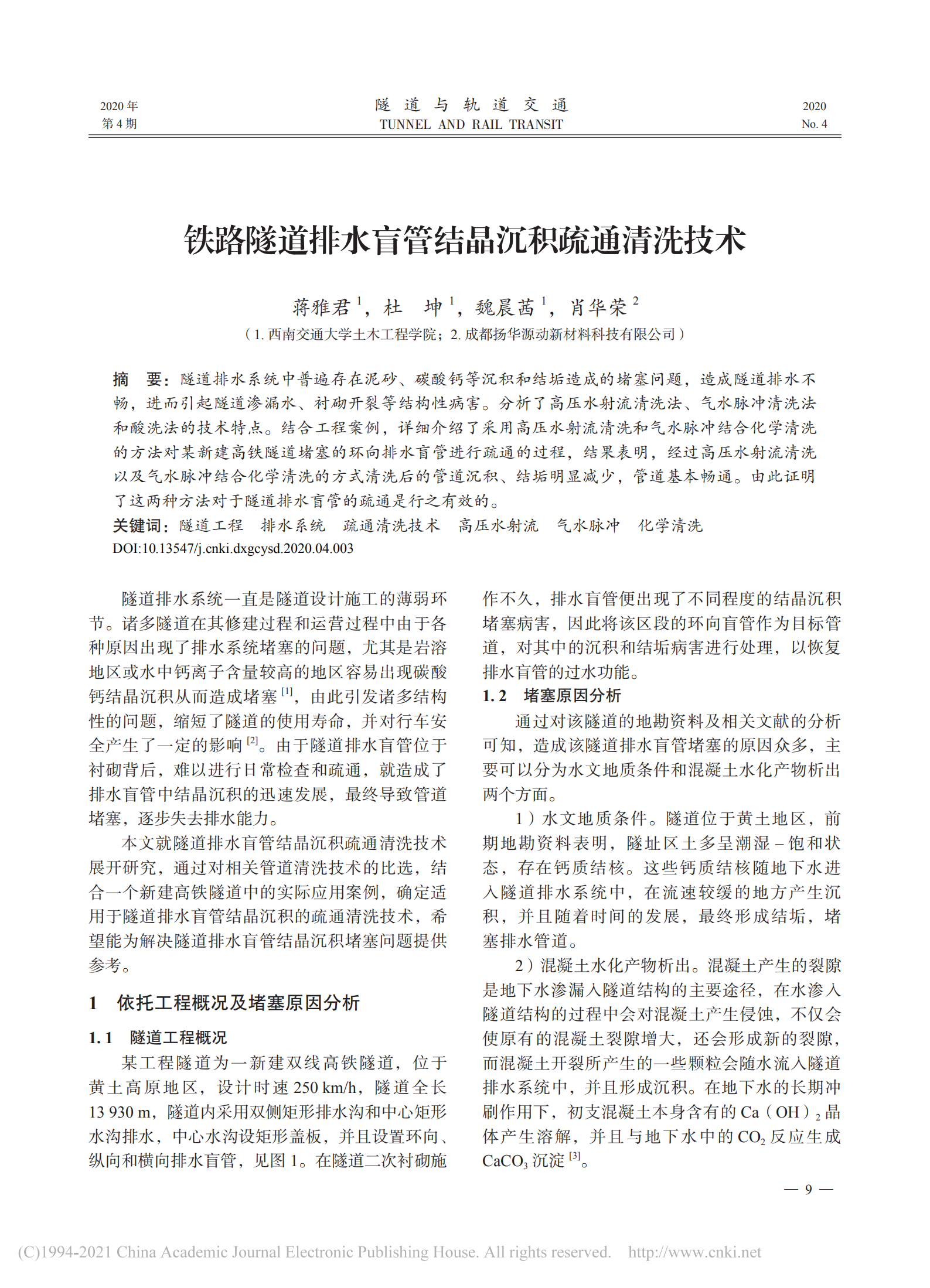 铁路隧道排水盲管结晶沉积疏通清洗技术