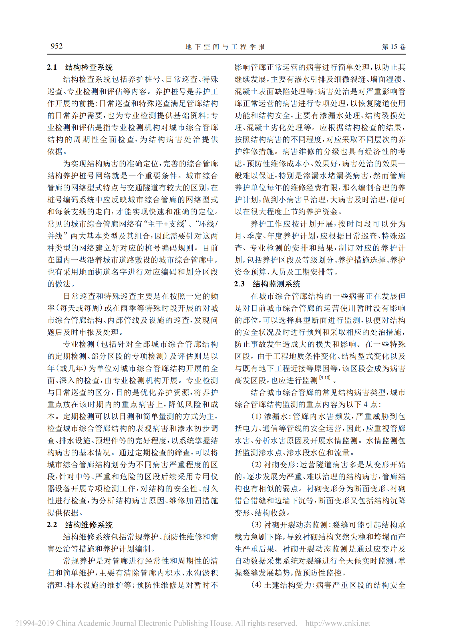城市综合管廊结构养护体系构建探讨