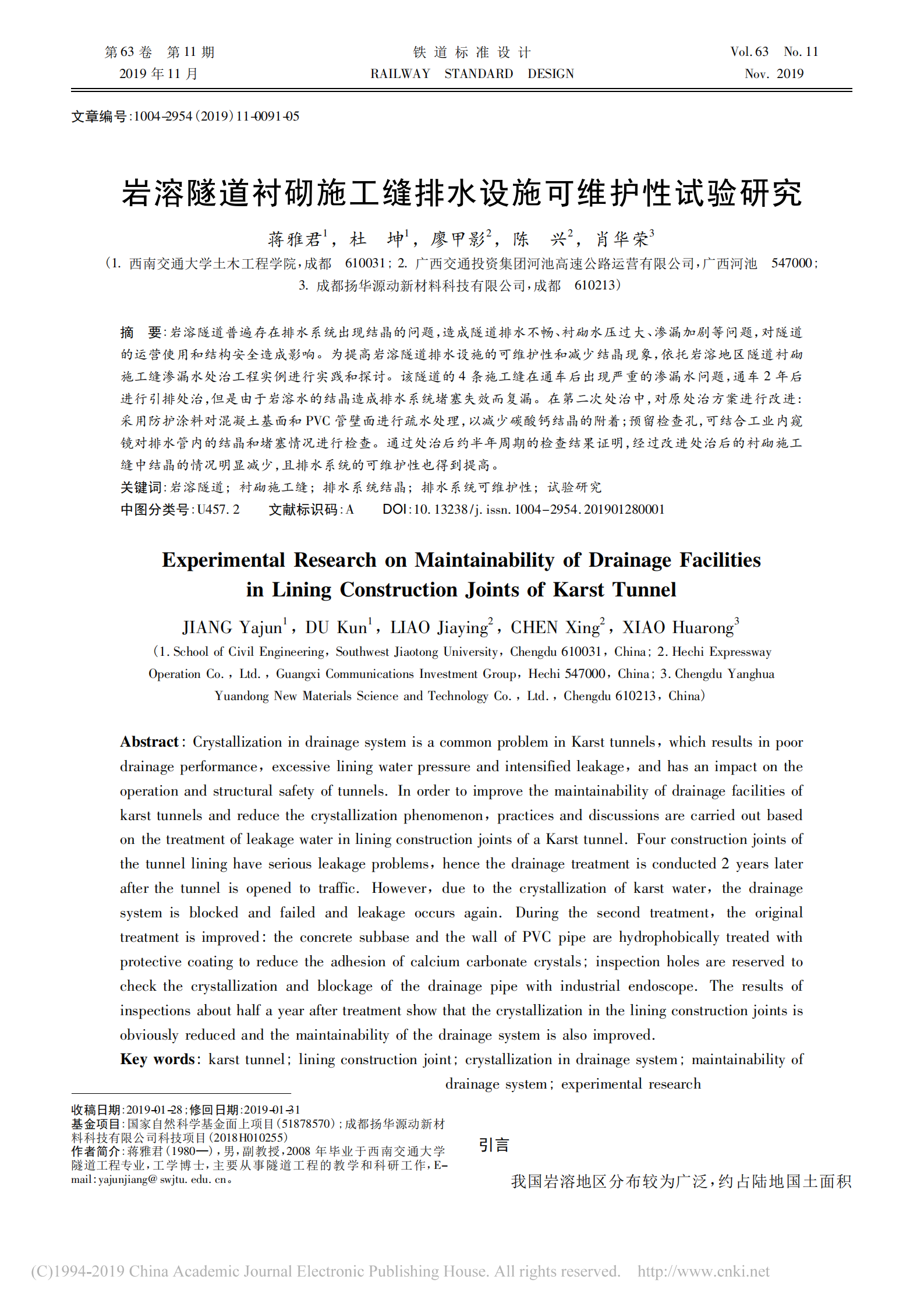 岩溶隧道衬砌施工缝排水设施可维护性试验研究